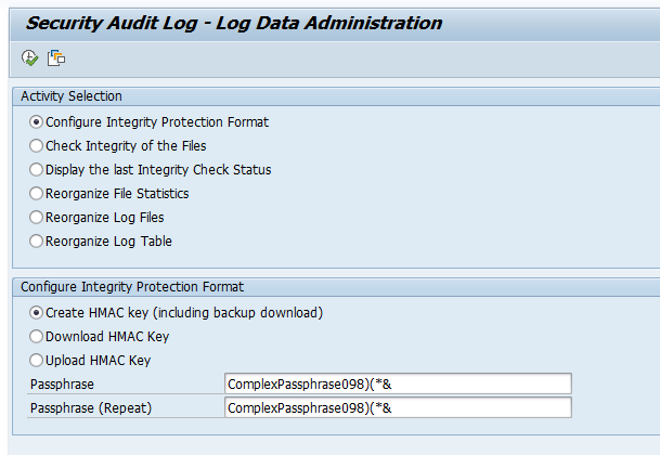 Step 3. In transaction RSAU_ADMIN and create the HMAC key:
