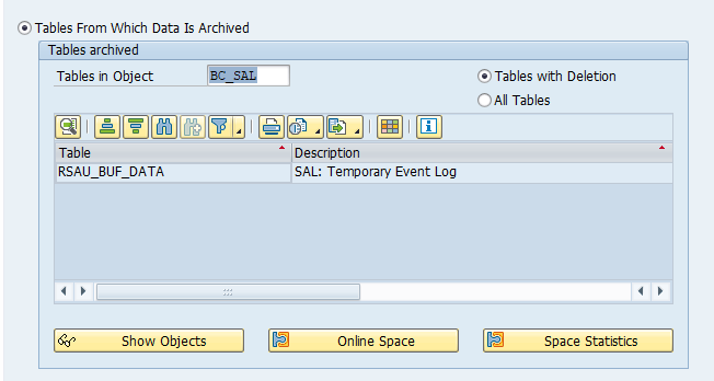 - RSAU_BUF_DATA SAL (Temporary Event Log) (is the only table in ECC 6.0 and older netweaver systems)
