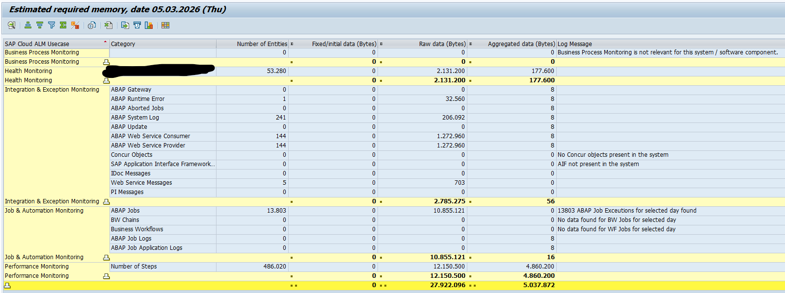 If you are running SAP Solution manager and are planning to move to SAP Cloud ALM, you can estimate the expected memory usage on SAP Cloud ALM. The first 24 GB are for free in the standard SAP contract. If you need more, you might need to acquire extra licenses.